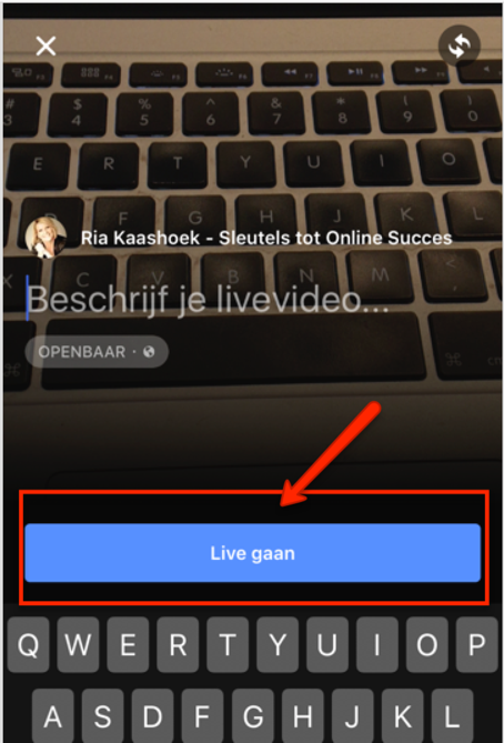 Je geeft je Facebook Live uitzending een naam. Deze Facebook Live uitzending verschijnt in het nieuwsoverzicht van je vrienden & fans bovenaan de video. Wil je dat mensen ook daadwerkelijk je live uitzending gaan kijken of volgen dan is een pakkende titel zeker een ‘must’ en met name ook dat ze weten waar jouw Facebook Live uitzending over gaat.